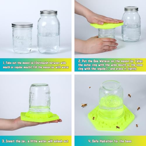 Innovative Use: our innovative bee watering feeder can be easily connected to regular and wide mouthed jars, The outer ring slot for wide mouthed jars, The inner ring slot for regular jars can use as shown in the picture