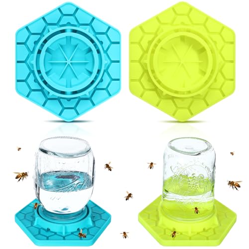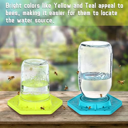 2 Pcs Bee Feeder for Mason Jar Bee Watering Station for Garden, Sugar Water Feeder Silicone Hive Drinker for Beekeeping Outside(Yellow and Cyan)