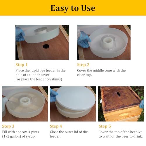 Easy to Use: Place the round bee feeder in the hole of an inner cover, and cover the middle cone with the clear inside cup to keep the bees from escaping or possibly drowning in the sugar water. Easy to fill without disturbing the hive.