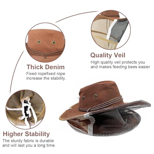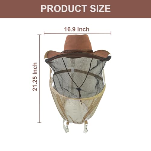 2 Pack Beekeeping Cowboy Hat, Beekeeping Hat with Veil Bee Veil Hat with Visibility Veil Professional Beekeeper Hat Beekeeping Protective Gear