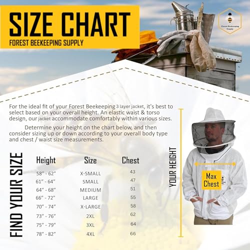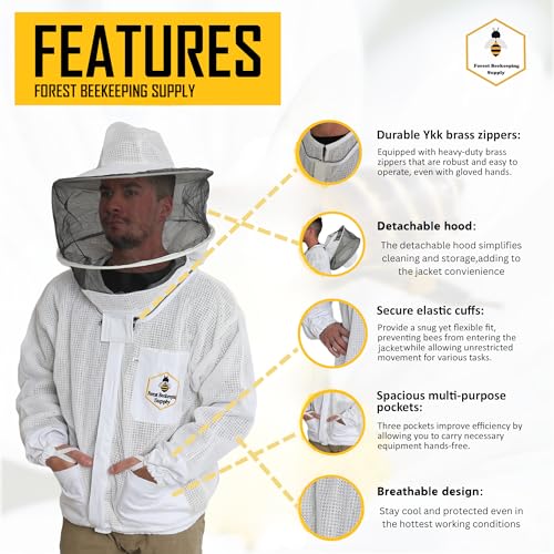 3 layer Ultra Ventilated Beekeeping Jacket for men and women with Round Veil Hood, Vented Premium Beekeeper Jackets for Professional, Commercial, and Beginner Beekeepers (X-large)