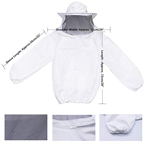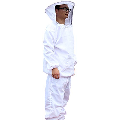 Bee Keeper Outfit, Bee Keeping Gear, Beekeeping Suit Protective with Veil Hood (Jacket, Pants, Gloves) White