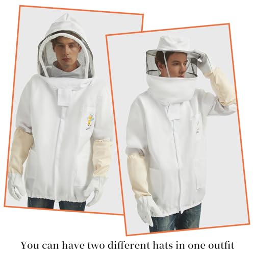 Complete Beekeeping Protection: Designed for beekeeping enthusiasts and professional beekeepers, this beekeeping jacket offers all-around protection. The set includes a bee-proof jacket, sheepskin gloves, and two bee-proof hats for peace of mind when working near hives.