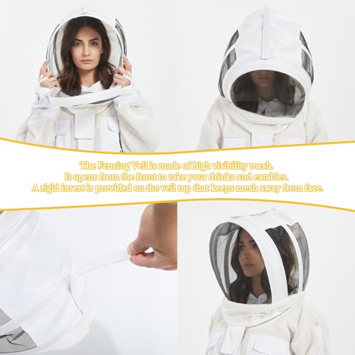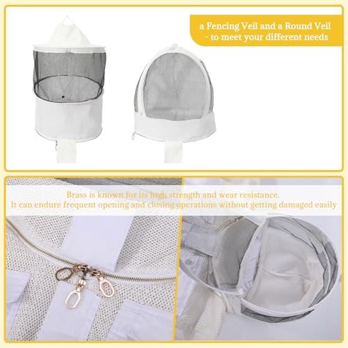 【2-PCS Detachable Veils for Maximum Versatility】 This bee suit comes with two types of detachable veils – a Fencing Veil and a Round Veil – to meet your different needs. The Fencing Veil features a highly visible mesh and opens from the front, making it easy to put on and take off. It offers great visibility for your beekeeping tasks. The Round Veil, on the other hand, provides a full 360° field of vision and excellent ventilation, ensuring you can see all around you while staying cool.