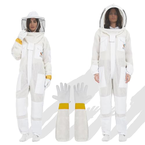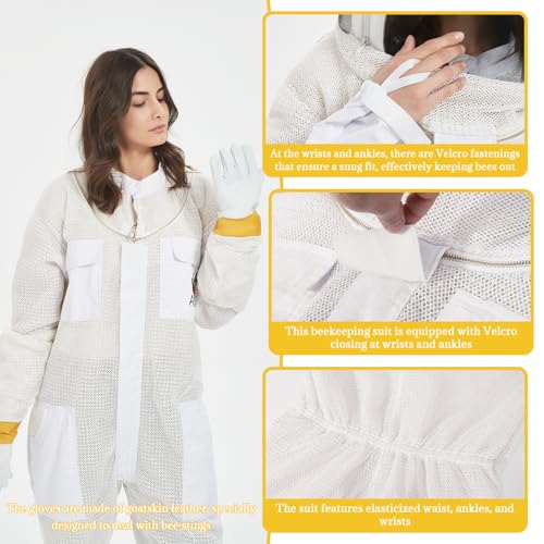 Professional 3-Layer Ultra Ventilated Beekeeping Suit&bee suits for men sting proof with Gloves & 2 Veils – Perfect for Men & Women& bees protective gear(M)