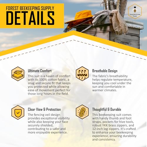 COMPLETE PROTECTION: Stay protected with a 100% cotton professional bee suit with a fencing hood and goatskin gloves. Designed for hobbyists and commercial beekeepers who want dependable coverage during hive inspections or honey harvesting.