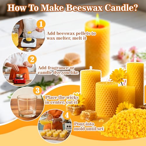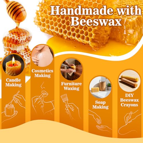 Beeswax For Candle Making: Opt for natural bees wax for candles making. When burned, natural beeswax candle produces a bright, stable and warm flame with a natural honey sweetness. Pure beeswax candles enhance ambiance, promote healthier air, and uplift your mood