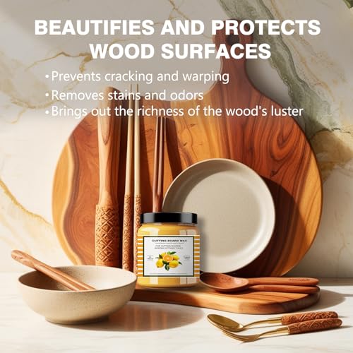 PRESERVING YOUR CUTTING BOARDS: Extend the life of your wooden cutting boards, spoons, and other kitchen utensils with our premium wood care wax. Designed to nourish and protect, this wax forms a barrier that shields your wooden items from moisture and ensures a fresh finish and longer life.