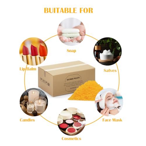 Yellow Natural Beeswax Pellets 8LB, Organic Beeswax, Beeswax for Candle Making, Body, Skin Care DIY, Lip Balm, Soap and Lotion Making Supplies