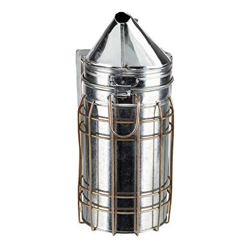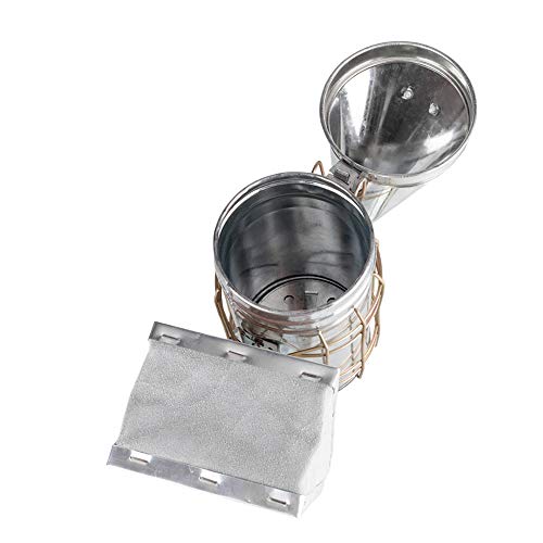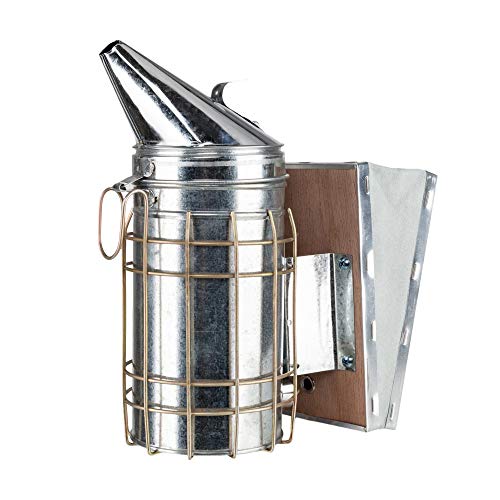 This Bee Smoker is safe and easy to use. Protective guard around smoker to prevent burns. It is made from galvanized plate and leather. There is a floor spacer to provide an air pocket at the bottom of the smoker body to ensure good air flow. With removable firebase plate, the bee smoker makes superior air flow to grow smoke efficiently. The mounting hook lets you hang it up when you need to use both hands. This durable smoker calms bees and helps you get into your hives when you need to perform routine checks, merge the colony and harvest the honey.