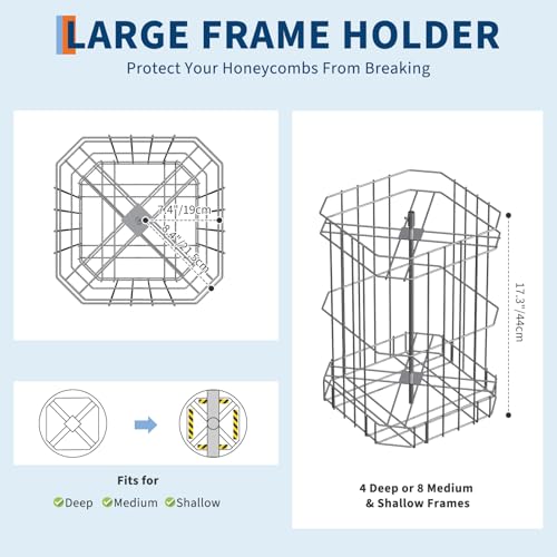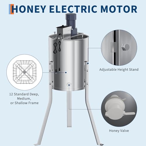 【Effortless Honey Extraction with 4/8 Frame Capacity】- This electric honey extractor accommodates up to 8 medium frames or 4 large frames, making it a versatile choice for small or large harvests. Perfectly sized for honeycomb frames (Deep: 18.9 in x 9 in, Medium: 18.9 in x 6.3 in ), it streamlines your honey harvesting process, bringing convenience and efficiency to your beekeeping routine.