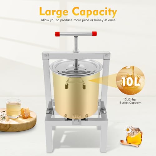 Fruit Honey Presser, 2.6Gal DIY Beeswax Extractor Stainless Steel Manual Grape Presser Fruit Wine Press Extractor Large Bucket Juice Extractors Large Capacity Juice Extraction Machine for Homes Farms