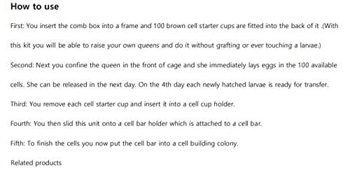 (2)Complete queen rearing kit eliminates the process of grafting by having the queen lay directly in the cell cups.