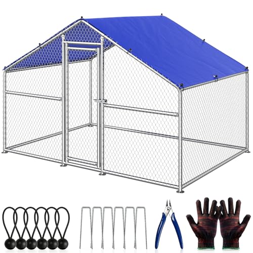 Large Metal Chicken Coop with Hexagonal Chicken Wire, Chicken Coop Run Pen for Yard with Waterproof Cover, Outdoor Large Walk-in Chicken Coops for 8 Chickens Duck Pen House Cage Run