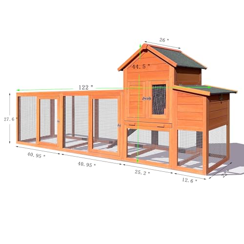 Spacious Accommodation: This 122-inch chicken coop provides plenty of room for up to 6 chickens to roam freely