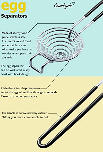 CAMKYDE Egg Separator Food Grade Stainless Steel Egg Yolk White Separation Tool, Set of 2 (Black)