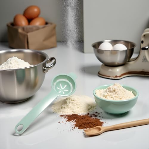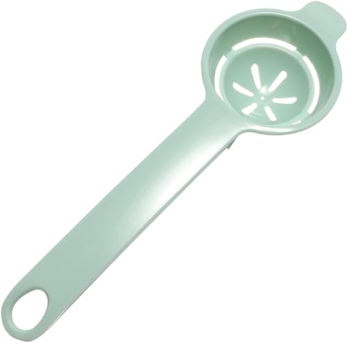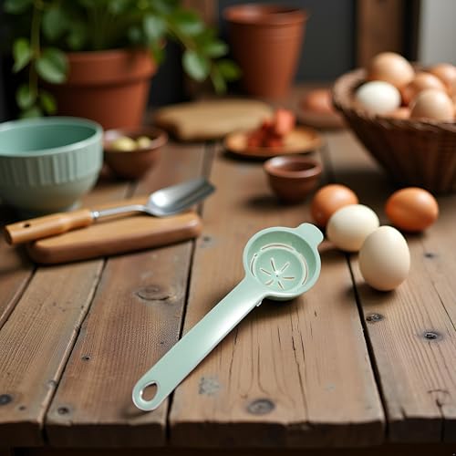 DESIGN: Light green egg separator tool made from food-grade plastic material for safely separating egg yolks from whites during cooking and baking tasks