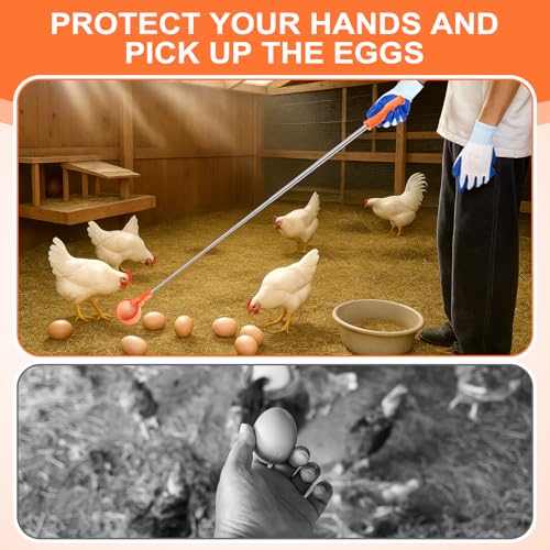 Adjustable Size: you will get a retractable egg picker and 1 pair of non-slip gloves; The egg grabber is 40 cm/15.7 inches to 195 cm/76 inches freely adjustable, allowing you to easily access eggs in hard-to-reach areas without straining themselves