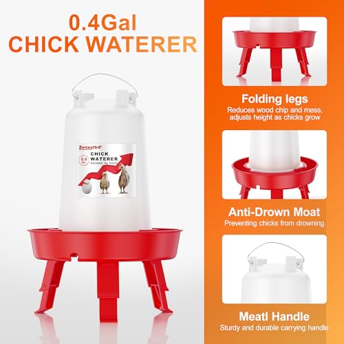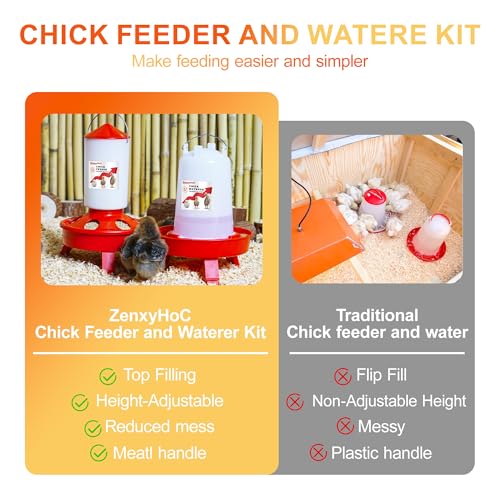 CHICK FEEDING AND WATERING SET: ZenxyHoC 0.4 Gal feeder and 0.4 Gal waterer is the perfect starter set for chicks