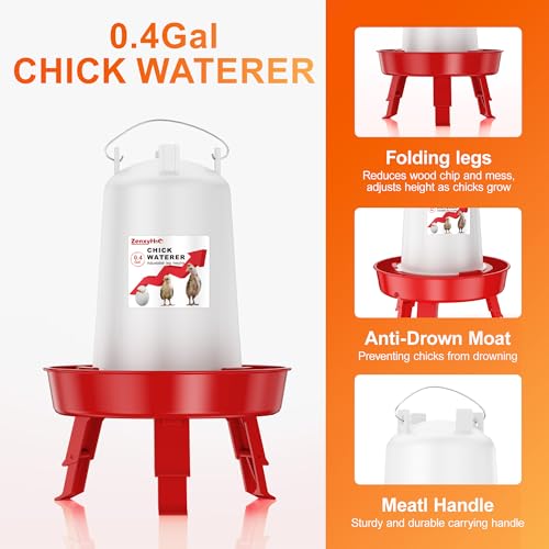 Chick Feeder and Waterer Set, Top Fill 6.6 LBS Feeder and 0.4 GAL Waterer with Scoop and 3 Adjustable Heights Legs