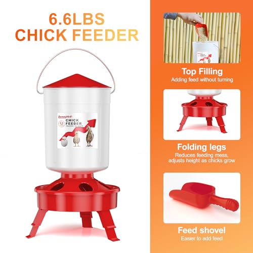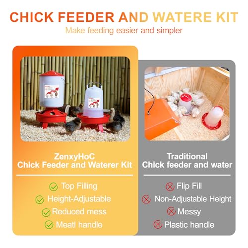 CHICK FEEDING AND WATERING SET: ZenxyHoC 6.6LBS feeder and 0.4Gal waterer is the perfect starter set for chicks
