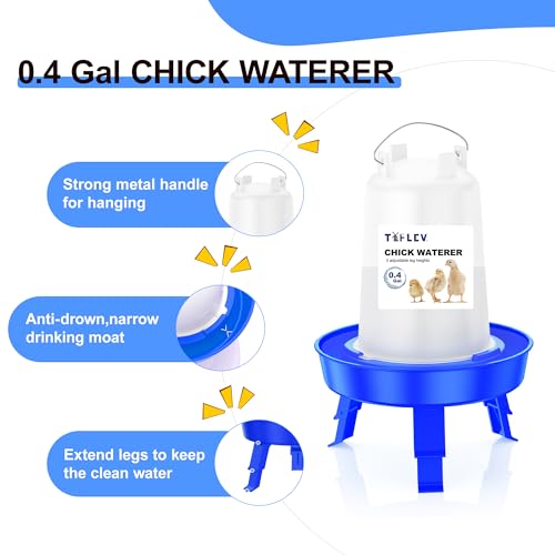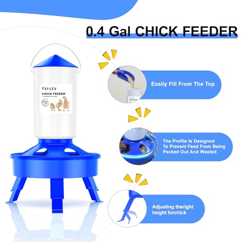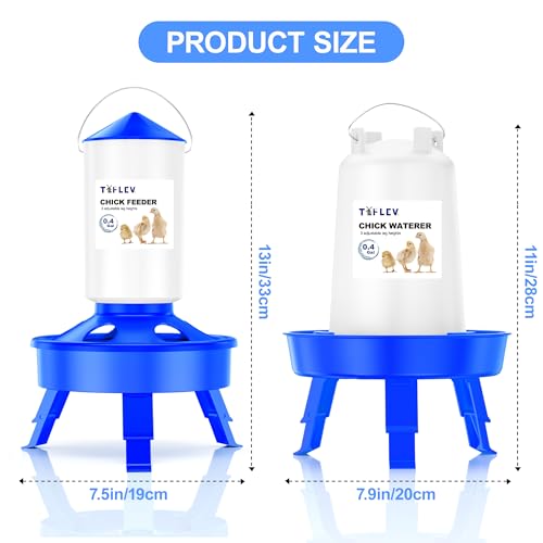 Top Filling Chick Feeder and Waterer Set with Scoop, 0.4Gal Chick Feeder and 0.4Gal Chick Waterer with 3 Heights Adjustable Legs for Chicks (Blue)