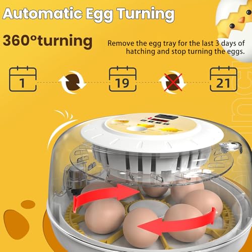 8 Egg Incubators for Hatching Eggs, Automatic Egg Turner and Egg Candle Tester, 360 Degree View, Farm Poultry Egg Incubators for Chicken Duck Goose Quails Eggs