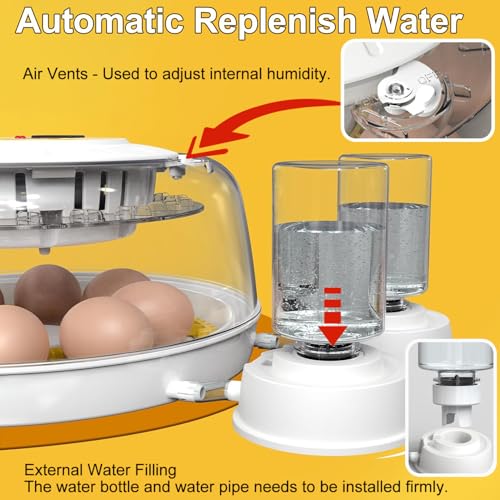 External Water Refill for Humidity Control – No need to open the lid, so humidity stays stable. Prevents temperature fluctuations and maintains an ideal environment for incubation. Upgraded breathable holes can also fine-tune the humidity.