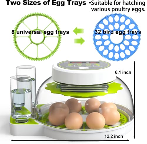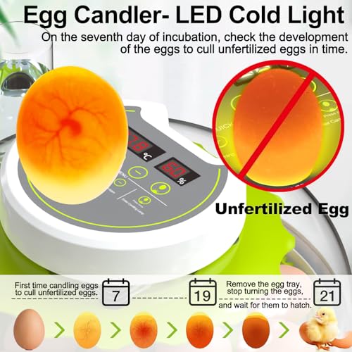 Egg Incubators for Hatching Eggs, Chicken Egg Incubator with Automatic Egg Turning, Temperature Control & Humidity Display, Egg Candler, Home Use for Chicken, Duck, Goose, Quail – Green