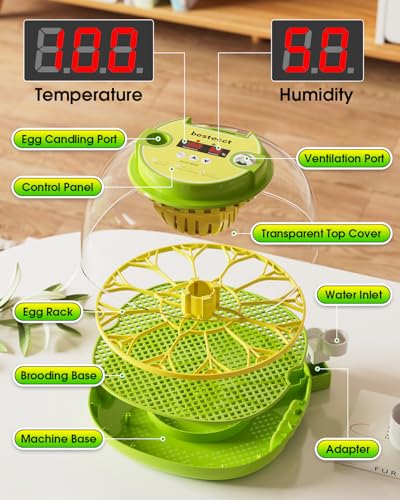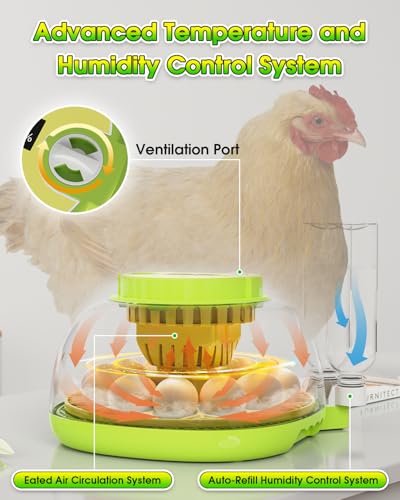 【Smart Climate-Controlled 12 Egg Incubator】The 12 egg incubator for hatching eggs provides precise temperature control (60-104℉) and automatic humidity control via dual-mode sensors, ensuring ideal embryo growth. Adjustable airflow vents enhance humidity precision (±2% accuracy) for flexible moisture management. Compact 12-egg capacity maintains stable conditions. Engineered for reliability, these incubators for hatching eggs boost hatch rates effortlessly