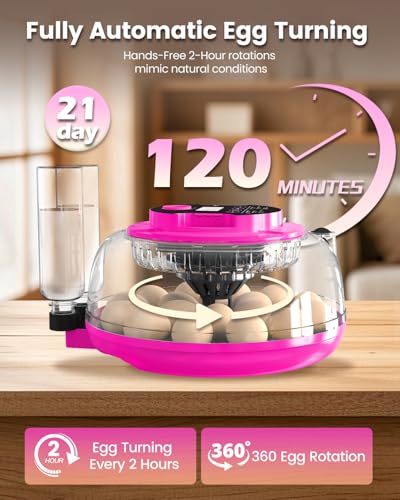 Easy to Use & Monitor: The incubator user-friendly design with LED display showing temperature, humidity, incubation days, and turning time. Built-in egg candler and a transparent lid offer 360° visibility, making it ideal for beginners and family educational activities.
