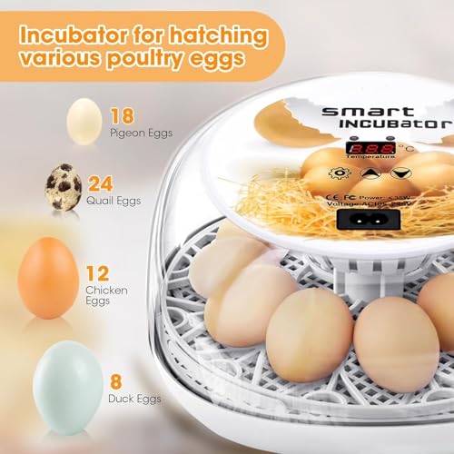 🥚🐣【Simple Operation】– The incubator for hatching eggs is made of environmentally friendly ABS material, and the overall design is removable and easy to clean. The egg candle holder allows you to visually observe the growth of the embryo without any additional purchase. After the incubation is completed, you can easily wipe the cover, and the other parts can be washed directly. Incubation is simple and easy to use.