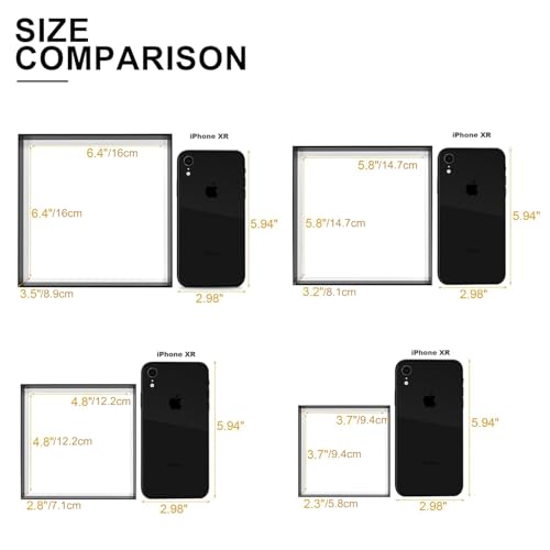 【4 Assorted Sizes of Gift Boxes】You will receive 4 different sized black nesting gift boxes with lids at once. You can put gifts of various sizes into different boxes. The internal dimensions of the 4 boxes are: 6.4″x6.4″x3.5″, 5.8″x5.8″3.2″, 4.8″x4.8″x2.8″, 3.7″x3.7″x2.3″.