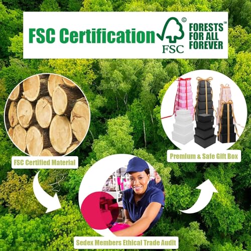 【No Installation & Reusable】Made from FSC certified cardboard, durable and reusable. The square nesting gift boxes with lids do not need to be installed and can be directly packaged, saving you time.