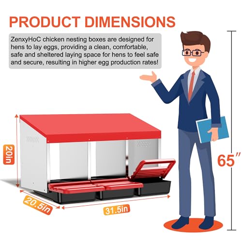 Happy hens:ZenxyHoC chicken nesting boxes have been specially designed. It provides hens with a clean, comfortable, secure and sheltered space to lay eggs, so they feel safe and secure, thus increasing their egg production rate. It is a very robustness, stable and easy to assemble nesting box that will last for a long time
