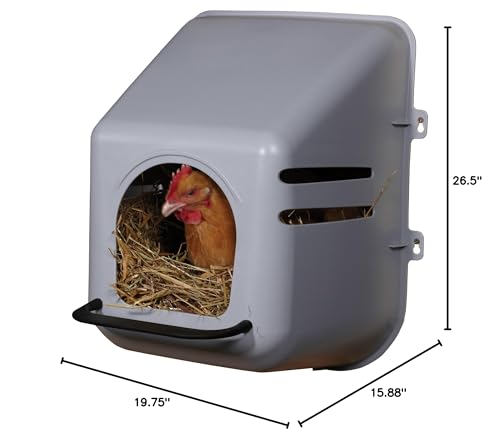 INCLUDES PERCH – This plastic nesting unit features an entrance perch that gives hens a place to land before entering the nest and ventilation holes for fresh air. The lowered box floor helps prevent a loss of bedding, sloped roof prevents roosting.