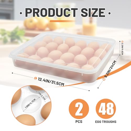 Large Capacity Egg Tray: Each egg tray comes in a set of 2, designed to hold a total of 48 eggs. With dimensions of 12.4 x 9.2 x 2.2 inches, this egg holder features 24 troughs per tray, making it perfect for family gatherings or parties.