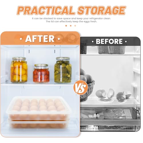 Practical Storage Solutions: This egg storage holder is designed to be space-efficient; stackable with a secure lid to keep your eggs fresh and your refrigerator organized. It’s the ideal solution for maintaining cleanliness and order in your kitchen.