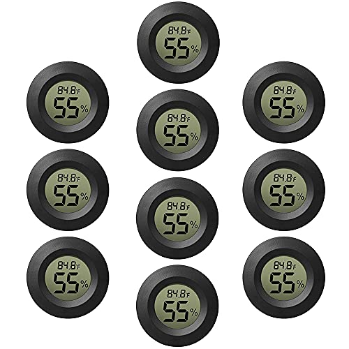 10-Pack Mini Thermometer Hygrometer, Small Digital Electronic Temperature Humidity Meters Gauge Indoor LCD Display for Humidors, Greenhouse, Garden, Cellar, Fridge, Mason Jar