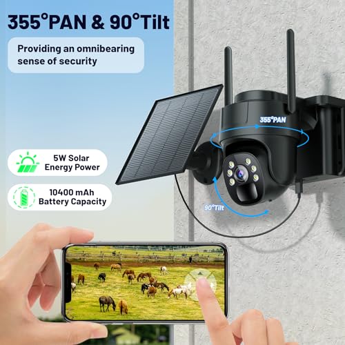 【Solar Powered with 10400mAh Battery】Equipped with a 5W high-efficiency solar panel and large-capacity battery, this wireless outdoor no wifi camera stays charged even in remote areas. No wiring is needed – completely cordless and solar-powered.