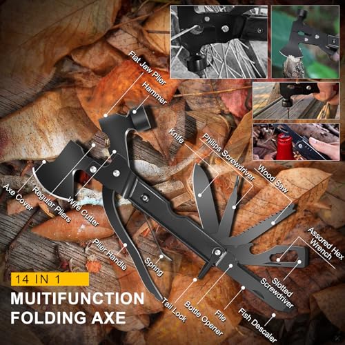 【Practical 14-in-1 Survival Kit for Emergencies】Includes every survival camping essential: survival bracelet, tactical pen, 3-mode flashlight (batteries not included), fire starter, emergency blanket, 8-in-1 spork, fishing bait, wire saw, 14-function hatchet, and bottle clip. All these survival tools and tactical gear packed in a rugged waterproof case (8.3×4.6×2.2 inches) keeping all cool gadgets organized and protected.