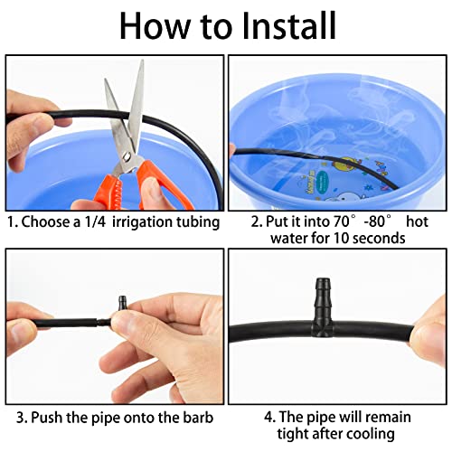 【How to Install】: The square tubing connector are designed with barbs. Before assembly, please place these drip irrigation fittings in 70-80 ° water for 10 seconds, and then push the pipe onto the barb. The pipe will remain tight after cooling.