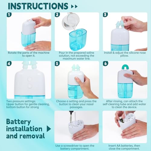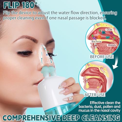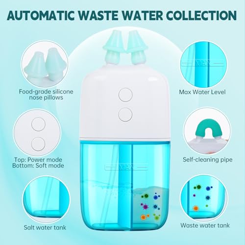 Nasal Irrigation System with Dual Speed and Auto Waste Collection – Portable and Travel-Friendly Nasal Irrigator – Nasal Cleaner for Sinus Relief Nasal Rinse Machine for Allergy and Sinus Care