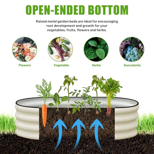 SnugNiture Galvanized Raised Garden Bed Outdoor, 2 Pcs 4x2x1ft Oval Metal Planter Box for Planting Plants Vegetables, White