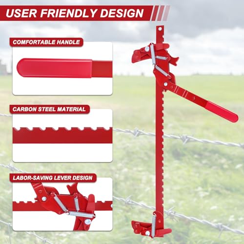 Heavy Duty Steel Wire Fence Stretcher Tool, All Purpose Wire Fence Stretcher for Barbed & Smooth Wire, Wire Fence Splicer Repair Tool, Red