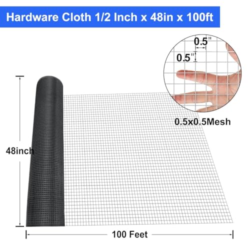 Land Guard Hardware Cloth 1/2 inch 48inx100.1ft PVC Vinyl Coated 19 Gauge Square Chicken Wire Fence Mesh Roll Raised Garden Bed Plant Supports Poultry Netting Cage Snake Fence…