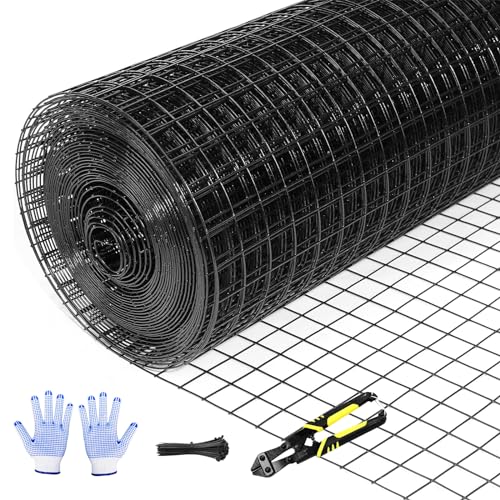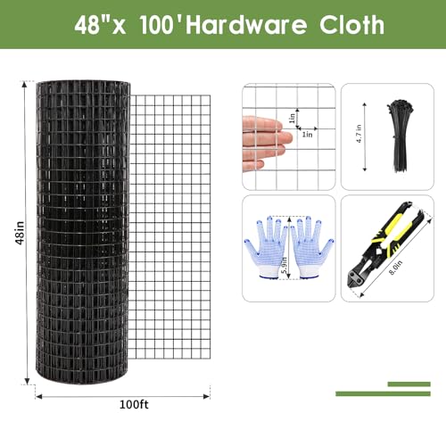 Tongmo 48″ x 100′ Black Hardware Cloth, 1inch Mesh Chicken Wire Fence, 19 Gauge Vinyl Coated Wire and Welded Wire Roll,Garden Fence, Poultry Netting for Rabbit/Duck/Chicken Coop