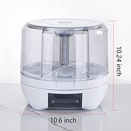 XIYAO 20Lbs large Grain dispenser 360°Rotating Rice Food Dispenser 6 Grids rice container rotatable Beans Containers Storage with Sealed lid for Peanut Barley Millet and Cereal