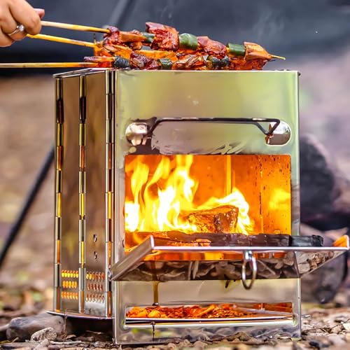 BACKPACKING STOVE: Eat well wherever adventure takes you with this camping stove wood grill. With a compact foldable design and a durable stainless-steel construction, this small wood stove makes it easy to prepare delicious meals and snacks on-the-go.