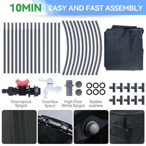 Upgraded Leak-Proof Spigot & Overflow Valve: Features a redesigned spigot with dual rubber gaskets to reduce dripping and leaks. The included overflow valve safely redirects excess rainwater, protecting the barrel and preventing pressure buildup at the base